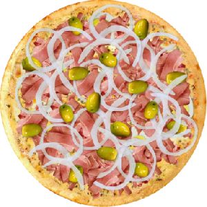 Azeitonas, Cebola, Molho de tomate, Mussarela, Orégano, Presunto
